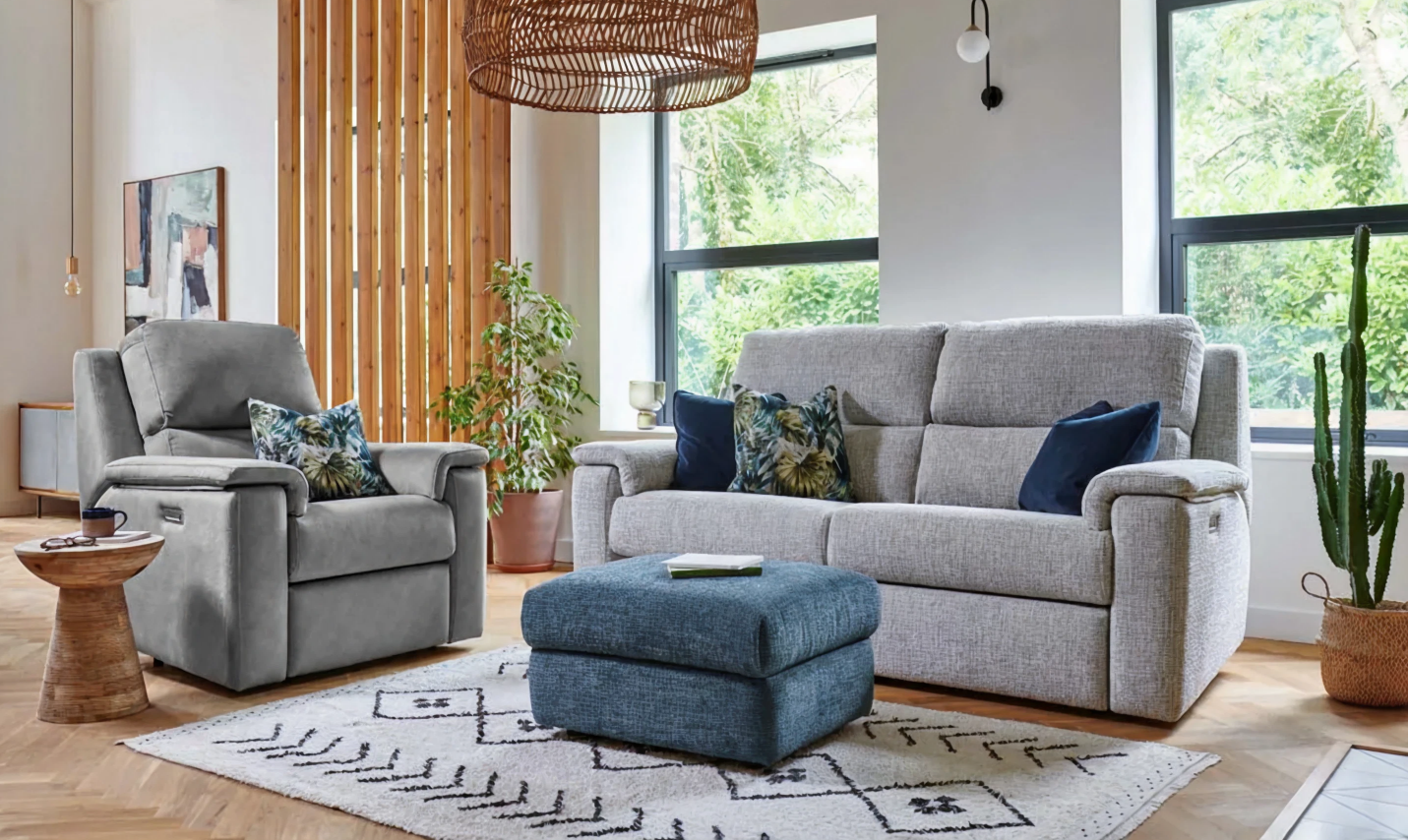 This large electric sofa offers smooth reclining at the touch of a button, complete with USB charging for added convenience. Power models may also include adjustable headrest and lumbar support for personalised comfort. The Harper range is modular, allowing you to build the configuration that suits your space, including curved layouts and optional storage footstools.